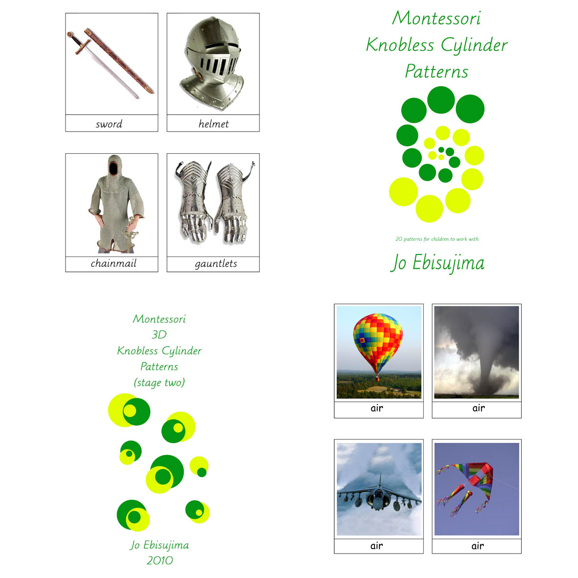 | knights and castles 3 part cards; knobbless cylinder patterns; 3D knobless cylinder patterns; air, land and water cards |